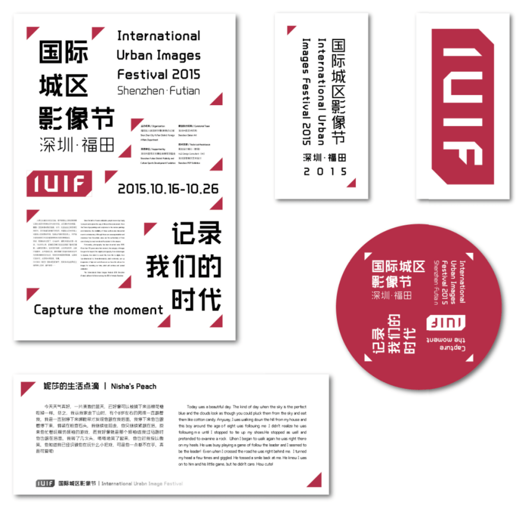 The draft was inspired by my old family albums. Back then, photos were neither stored on the cloud disks nor in a fancy album with transparent leaves. Some tin foil like material were stuck to each page and create frames that can hold printed photos. I utilized the triangular shape to trim corners off bold san-serif fonts and made the word “IUIF” looks like being held in the same way of an old album.