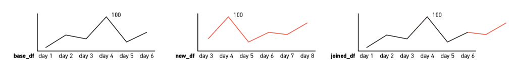 2. In the other situation, the max dates in the two tables are not the same. In that case, we need to normalize the new dates that are going to be add to the base table. The formula is simple enough: